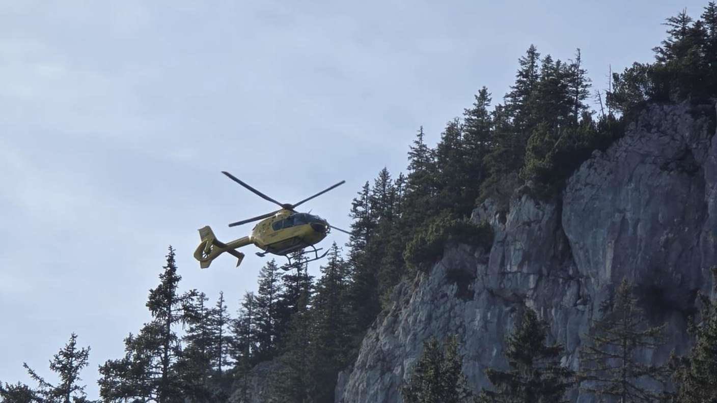 Ein Sportler ist an der Krettenburg nahe der Oberen Firstalm mit einem Arm im Fels hängengeblieben und konnte nicht mehr weiterklettern. Die Bergwacht setzte auf einen Hubschrauber mit Bergetau.